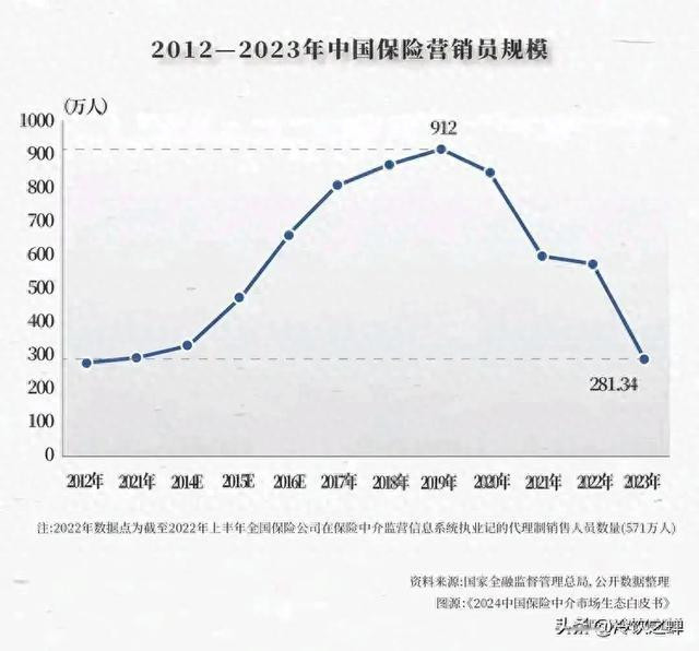 这种感觉的真实的,因为从统计数字看,保险从业人员从2019年的最高峰912万人,已经下降至2023年的281万人,可以肯定的是2024年这个数字还会降低。